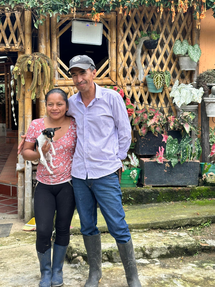 José Elcias Martinez grew up in a coffee farming family. Though he left home to work all around Colombia as a bus driver, he eventually came back to his roots and bought El Casino. José and his wife Fancy are now managing the 10 hectare farm. Among which, 5 hectares are planted with Caturra, Pink Bourbon, Geisha, and Tabi.